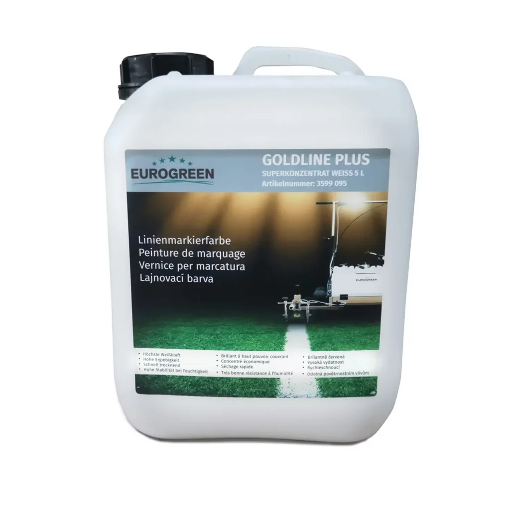 GoldLine PLUS Superkonzentrat sorgt für noch brillantere weiße Farbe zur Markierung ohne Wasserzugabe mit unserem Linienmarkierer LinoGold 2.
