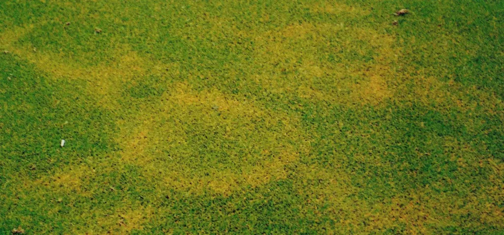 Das Fusarium Blight-Syndrom, verursacht durch den Pilz Fusarium spp., wird durch mehrere Faktoren begünstigt. Stauende Nässe tritt häufig bei unzureichend drainierten Böden oder bei ständiger Überbewässerung auf und schafft ideale Bedingungen für das Wachstum des Pilzes. Der Pilz gedeiht bei hohen Temperaturen in feuchtem Milieu und befällt die Gräser, wenn diese durch die überschüssige Feuchtigkeit geschwächt sind. Schlechter Wasserabfluss, beispielsweise durch verdichteten Boden oder Rasenfilz verstärkt dieses Problem, da sich Wasser ansammelt und die Wurzeln in einem feuchten, sauerstoffarmen Zustand verbleiben, was die Rasenpflanzen anfällig für Infektionen macht. Eine unausgeglichene Nährstoffversorgung mit Stickstoffüberschuss und gleichzeitig Kaliummangel fördert das schnelle Wachstum von Gräsern, wodurch die Pflanzen anfälliger für Stress und Krankheiten wie Fusarium Blight werden, da der Pilz auf die nährstoffreichen Gewebe zugreift. Extreme pH-Werte von < 5 und > 7 begünstigen die Infektionsgefahr.
