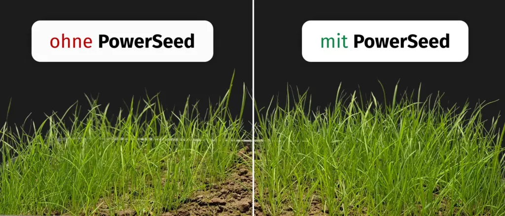 - Beschleunigte Keimung: PowerSeed verkürzt die Keimdauer um mehrere Tage. Besonders bei langsam keimenden Arten wie Festuca rubra oder Poa pratensis ist das ein großer Vorteil. Das führt zu einer schnelleren Etablierung und einem rascheren Narbenschluss.