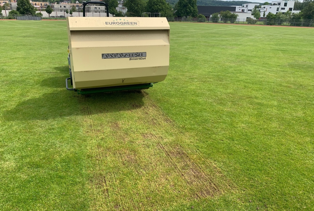 Entfernung von Rasenfilz auf großen Rasenflächen mit dem Vertikutierer "AMAZONE"